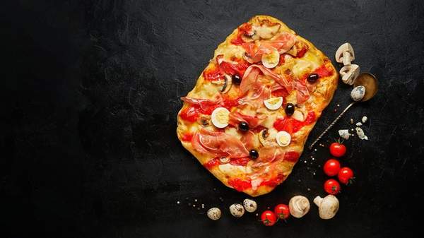 Pizza testo, kečap, šunka, sir, šampinjoni