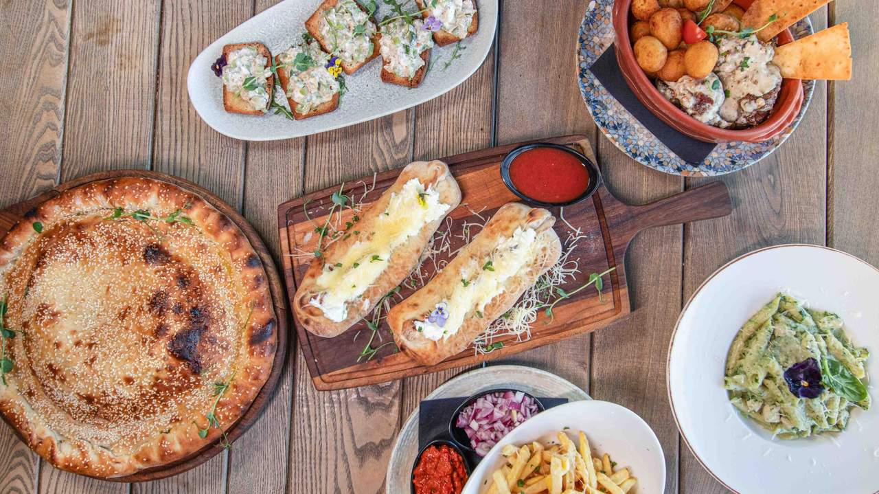 Pršuta, dimljena pečenica, kulen, kobasica, parmezan, paladin sa plavim plesni, bri, gauda, dimljeni sir, feta, kajmak, tartar, ajvar, jaje i miks zelenih salata