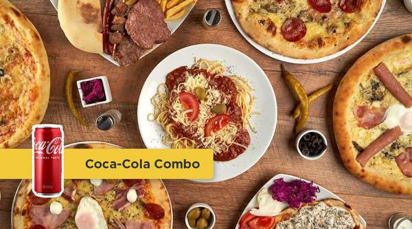 Pelat, origano, šunka, šampinjoni, sir, masline, Coca-Cola 330ml