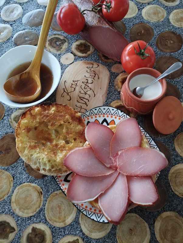 Domaća lepinja, jaje, zlatiborski kajmak, zlatiborska pršuta, pretop