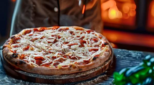 Sauce tomate, basilic, mozzarella artisanale, pepperoni, poivrons, viande hachée, oignons,sauce barbecue