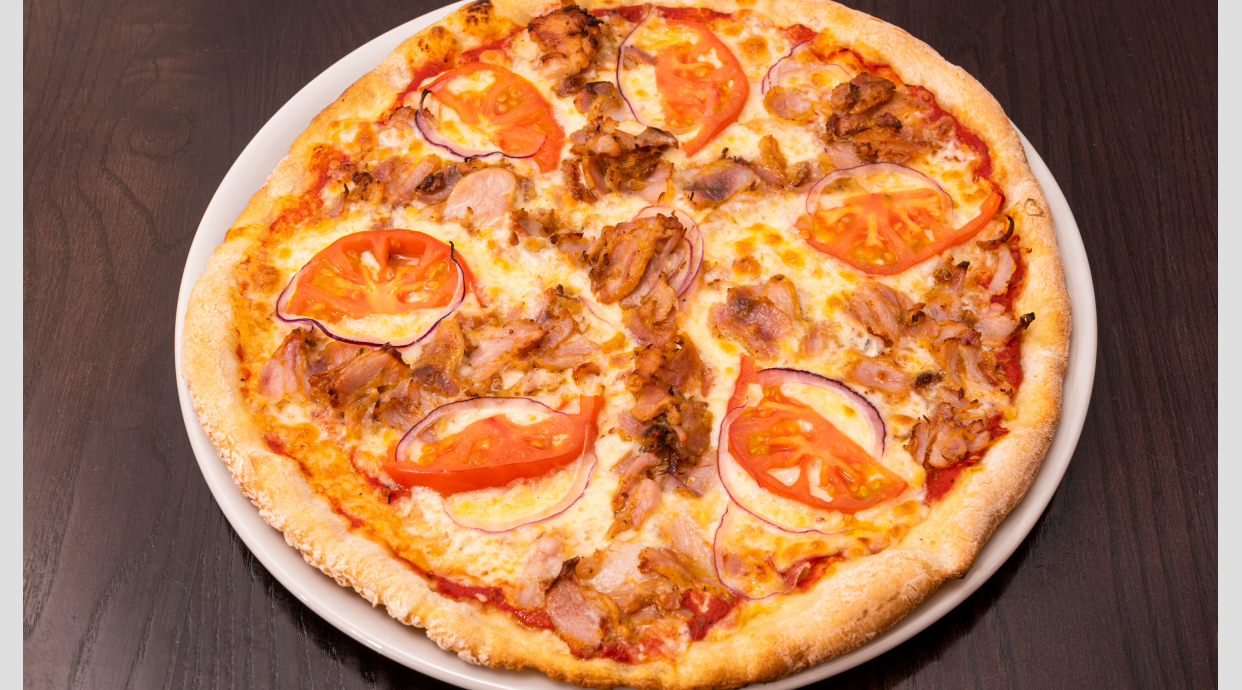 sauce tomate, mozzarella, oignon, tomate fraiche, poivron, champignon, olives