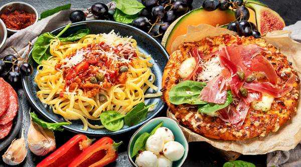 Sauce tomate, fromage, champignon, aubergine, courgette, piment, frite, oignon, olive, câpres