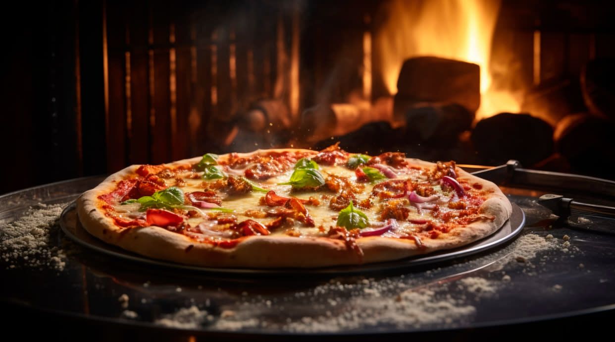 Sauce tomate, mozzarella, câpre oignon, poivre vert, tomate, champignons, olives