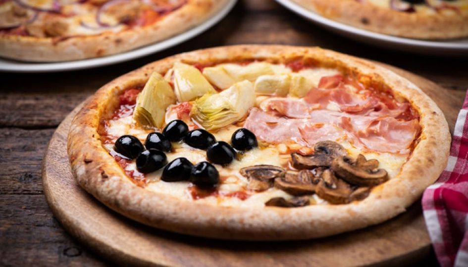 Sauce tomate, mozzarella, escalope, chawarma, jambon