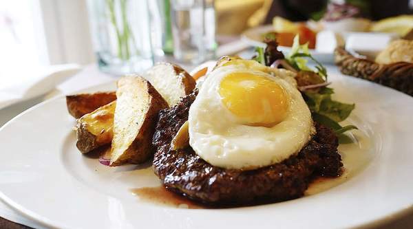 лосось Гравлакс, соус Цезарь, яйце перепелине, сир Пармезан, салат Айсберг, салат Лоло, томат чері.