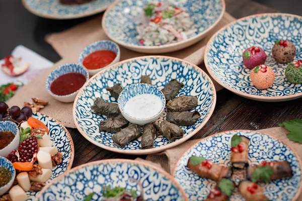 У поєднані з лавашем, начиненим маринованою цибулею, кінзою та гранатом