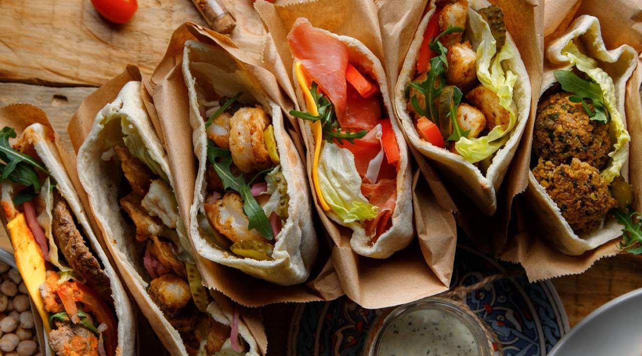Поєднання хумусу, смажених шампіньонів із спеціями та свіжим й хрустким айсбергом. Особливою родзинкою є ніжний сир фєта та хрусткі мариновані огірки.