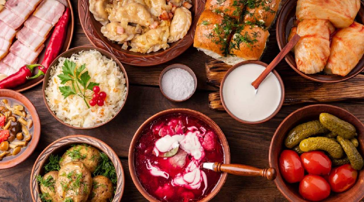 Традиційний червоний борщ , зі свинячими реберцями . Подаємо з тостами та перетертим салом з часноком.Подаємо зі сметаною та часточкою лимона!