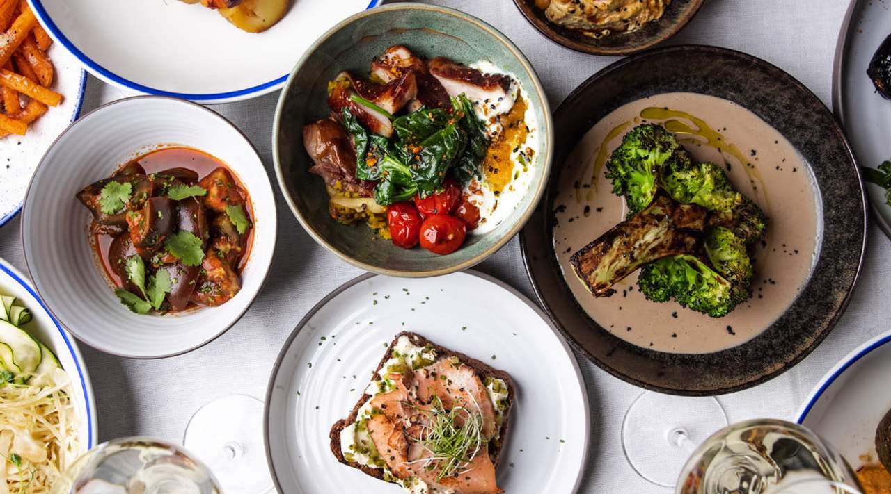 Половину баклажану в глазурі запікаємо в хоспері та подаємо з йогуртом, джемом з томатів та міксом салатів. Посипаємо дуккою. Алергени: цибуля, кінза, горіхи, чилі, часник, імбир (входять до маринаду), мед, рукола.