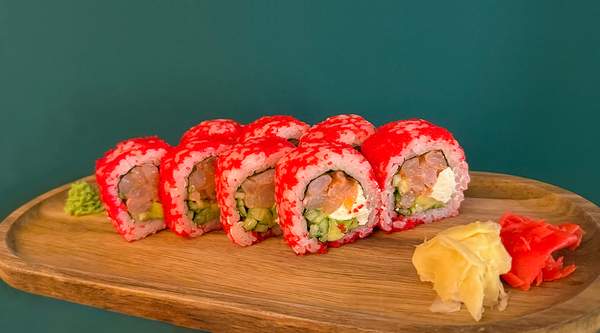 Рис, норі, вершковий сир, авокадо, масаго, лосось, соус Унагі