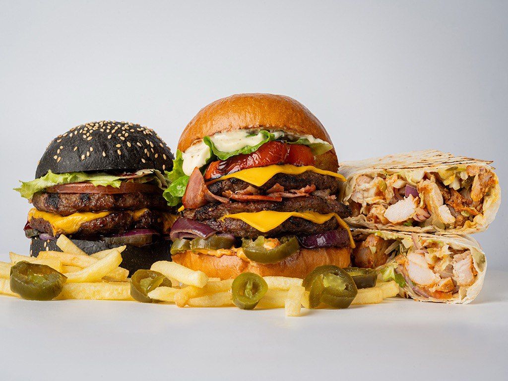 Три соковиті яловичі котлети, що ідеально поєднуються з авторським соусом, хрусткою цибулею фрі та запеченою цибулею гриль. Додаємо гострий перець халапеньо, бекон, болгарський перець, ніжний сир Чедер і листя свіжого салату Ромен. А фінальний акцент – н