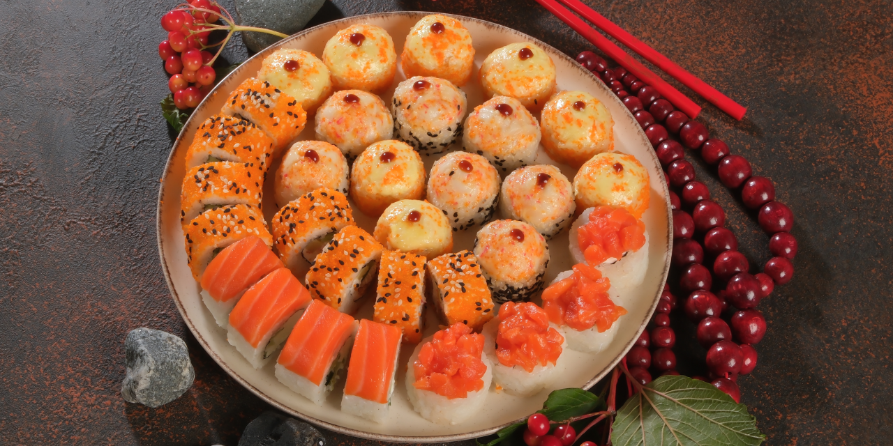 Кіліманджаро теплий рол, Каліфорнія сезам рол, Філа масаго теріякі рол, вага: 770 г
