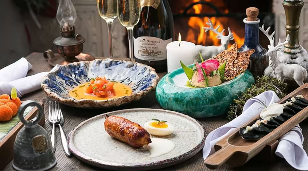 Чорні вареники готуємо на заварному тісті. Чорний колір отримуємо шляхом додавання у тісто чорнил каракатиці. Начинку готуємо з фаршу із судака, копченого сала та цибулі. Подаємо з соусом із рубленими томатами та сметаною.