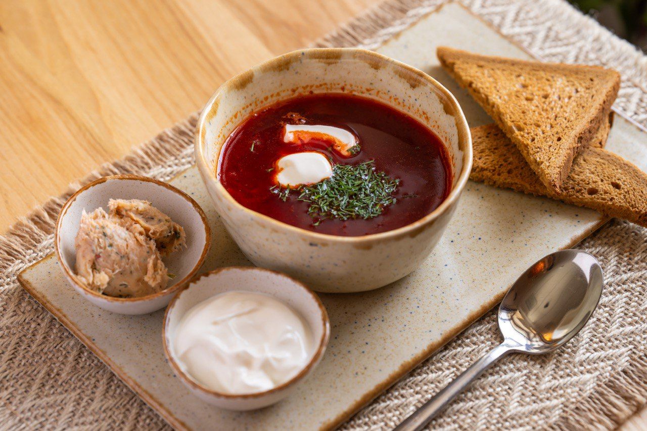 Червоний борщ з грінками та смальцем від нашого Тата