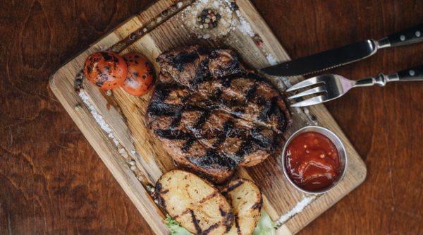 Шашлик зі свинини, кабачок гриль, печериці гриль, томати гриль, лаваш сулугуні, сік томатний.