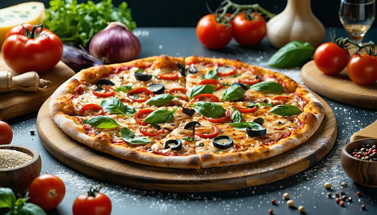 томатний соус, моцарела, курка, салямі, шинка, мисливські ковбаски