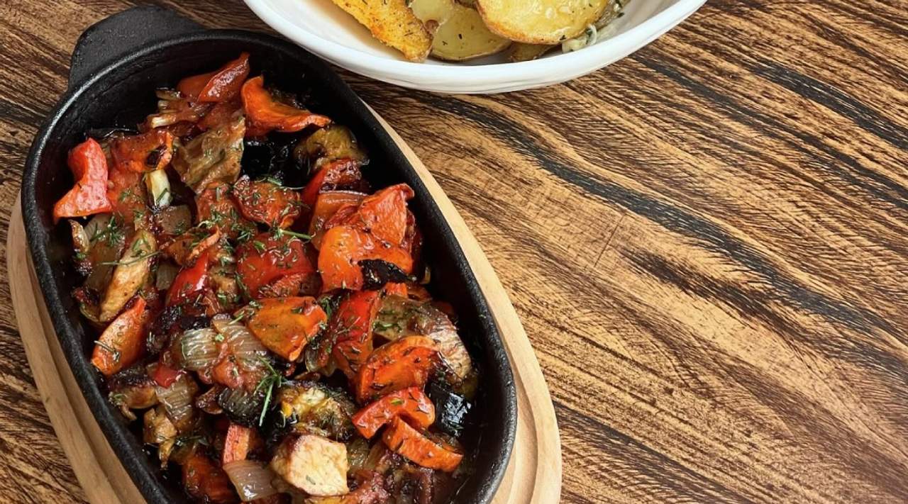 Класична пісна страва з запечених овочів з квашеною цибулею
