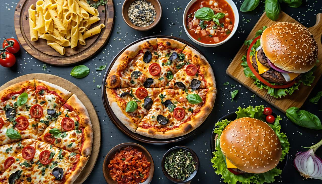 Томатний соус, моцарела, чеддер, котлета яловича, огірок маринований, цибуля карамелізована, бекон