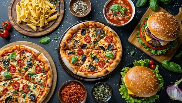Кетчуп Чилі, моцарела, балик, салямі, мисливські ковбаски, цибуля маринована, гриби свіжі, зелень