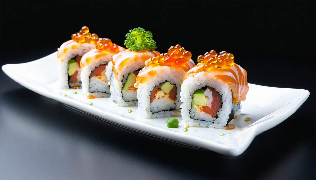 Норі, рис, огірок, креветка, лосось, крем сир, авокадо, ікра масаго