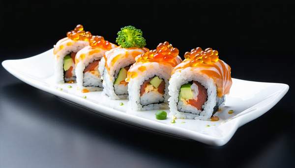 Рис, огірок, лосось, крем-сир, ікра масаго