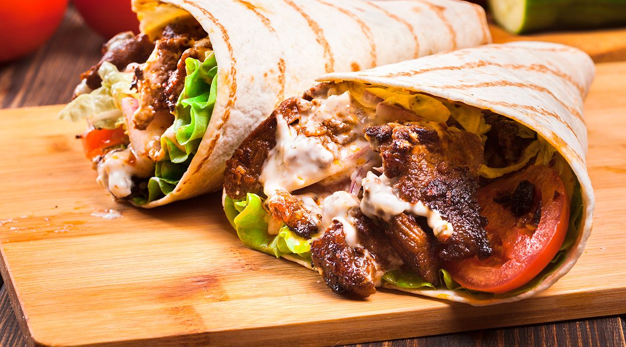 Лаваш, м`ясо куряче кебаб, капуста пекінка, Сир плавлений, помідор, маринована цибуля, гірчиця Американська, та фірмові соуси