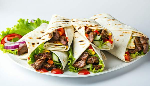 Лаваш, (м'ясо на вибір курка чи свинина) томати, салат Айсберг, огірок, цибуля маринована, Кетчуп та соус власного виробництва Аджика та Часниковий