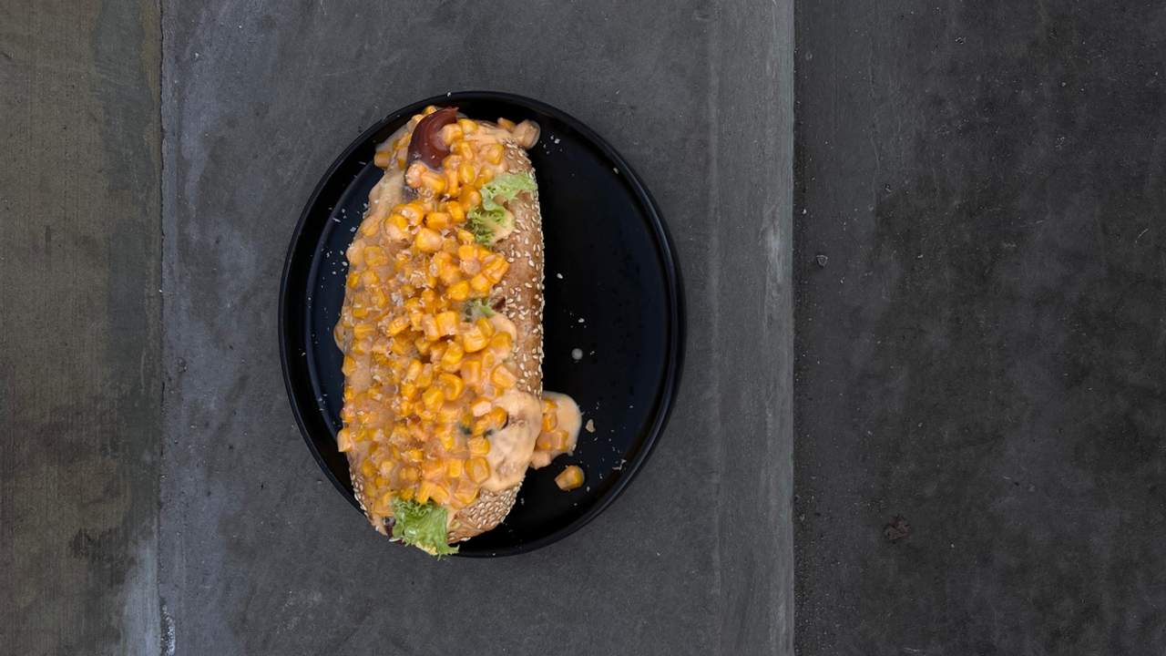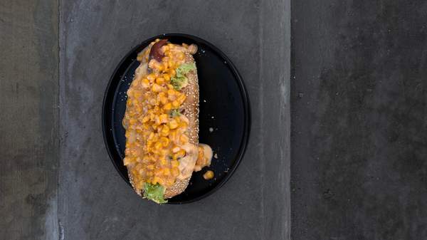 Булочки випікаємо в пекарніі у місті Тернопіль, у булочку додаємо: Крафтовий Сирний соус змішуємо з кукурудзою, сир Моцарела, сосиска завернута у сир Чедер, поливаємо Сирним соусом з кукурудзою. Прикрашаємо тертим Пармезаном