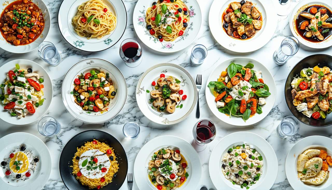 Вершкова основа, Моцарела, курка, бекон, лисички, білі гриби, Печериці, вʼялені томати, Бринза, Пармезан, Грецький горіх