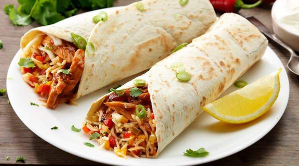 Кукурудзяна тортилья, овочі, чилі Сальса, сир, картопля фрі, кінза, ананас, крем Американа, капуста, цибуля, авокадо.