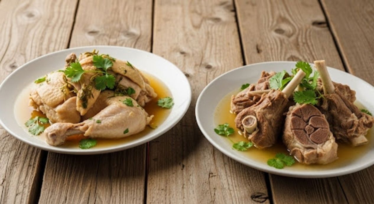 Soft, juicy goat meat slow-cooked with herbs for rich flavor