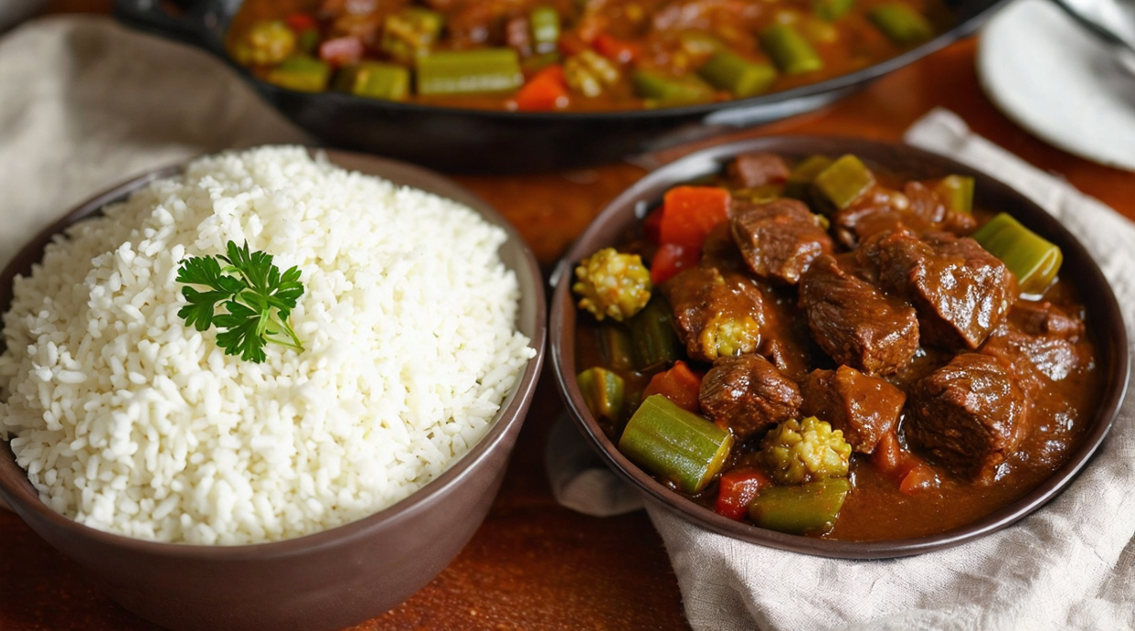 Hearty Ugandan breakfast stew served with your choice of beef, offals, beans, or peas