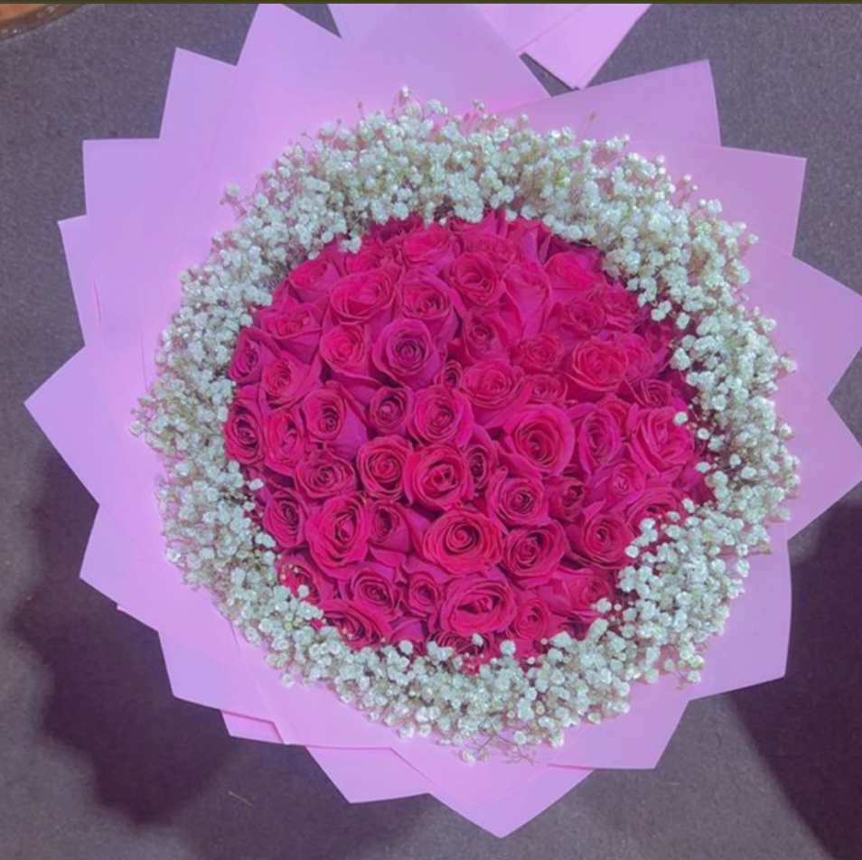 Hot Pink With Baby’S Breath Handbouquet 10 batches of 20stems