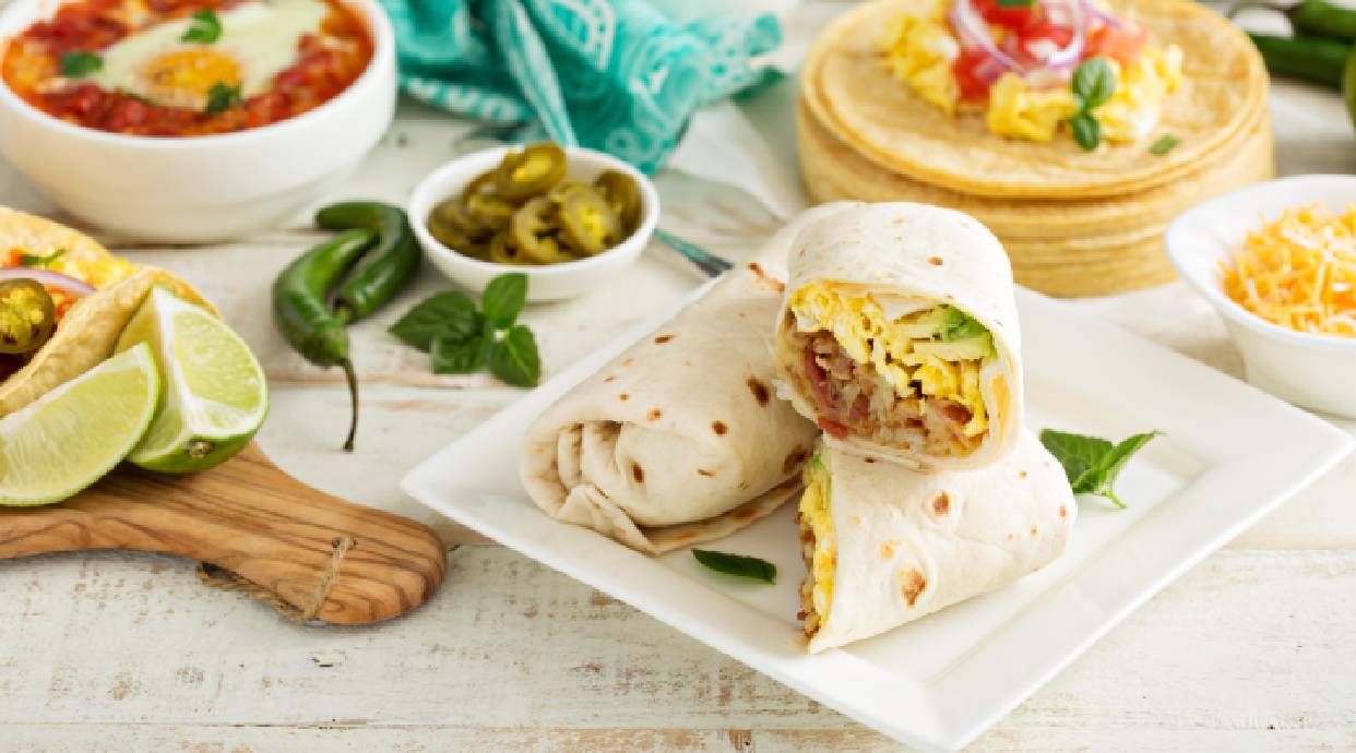 Chicken or halloumi with lettuce, tomato and avocado wrapped in a tortilla