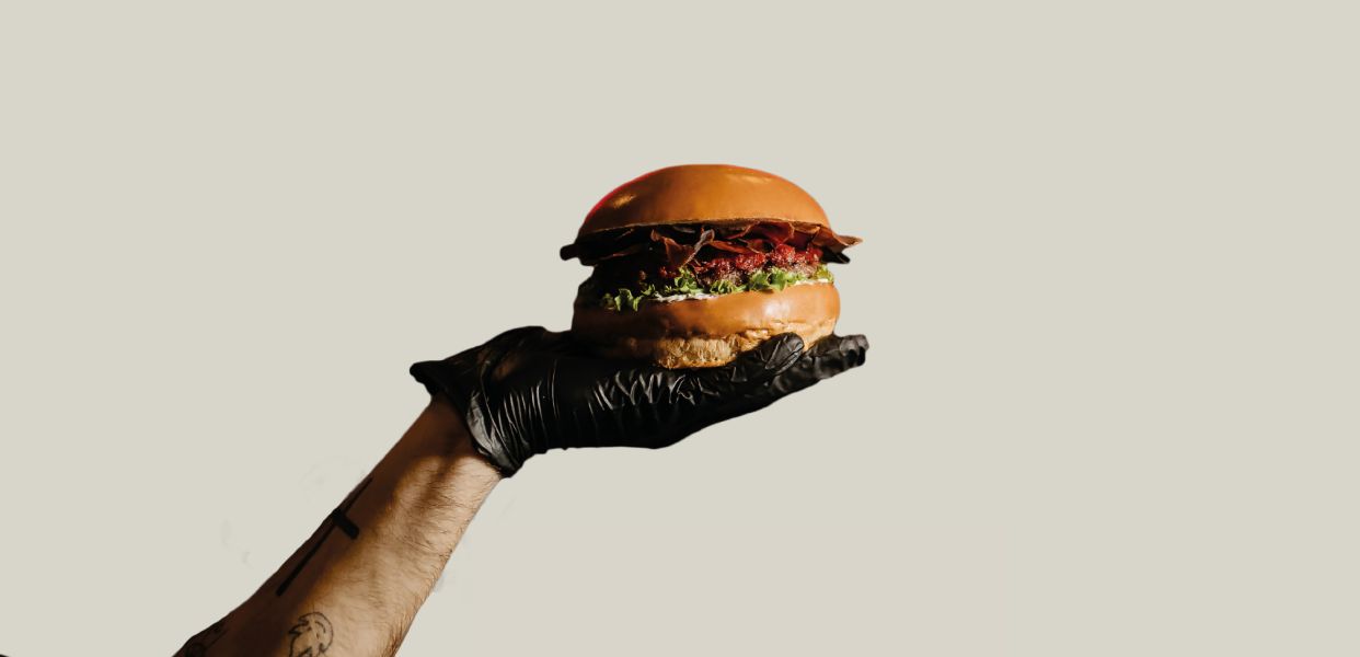 Տավարի միս, բեկոն, չեդդեր պանիր, մարինացված վարունգ, լոլիկ, հազար, չիլի չիզ սոուս