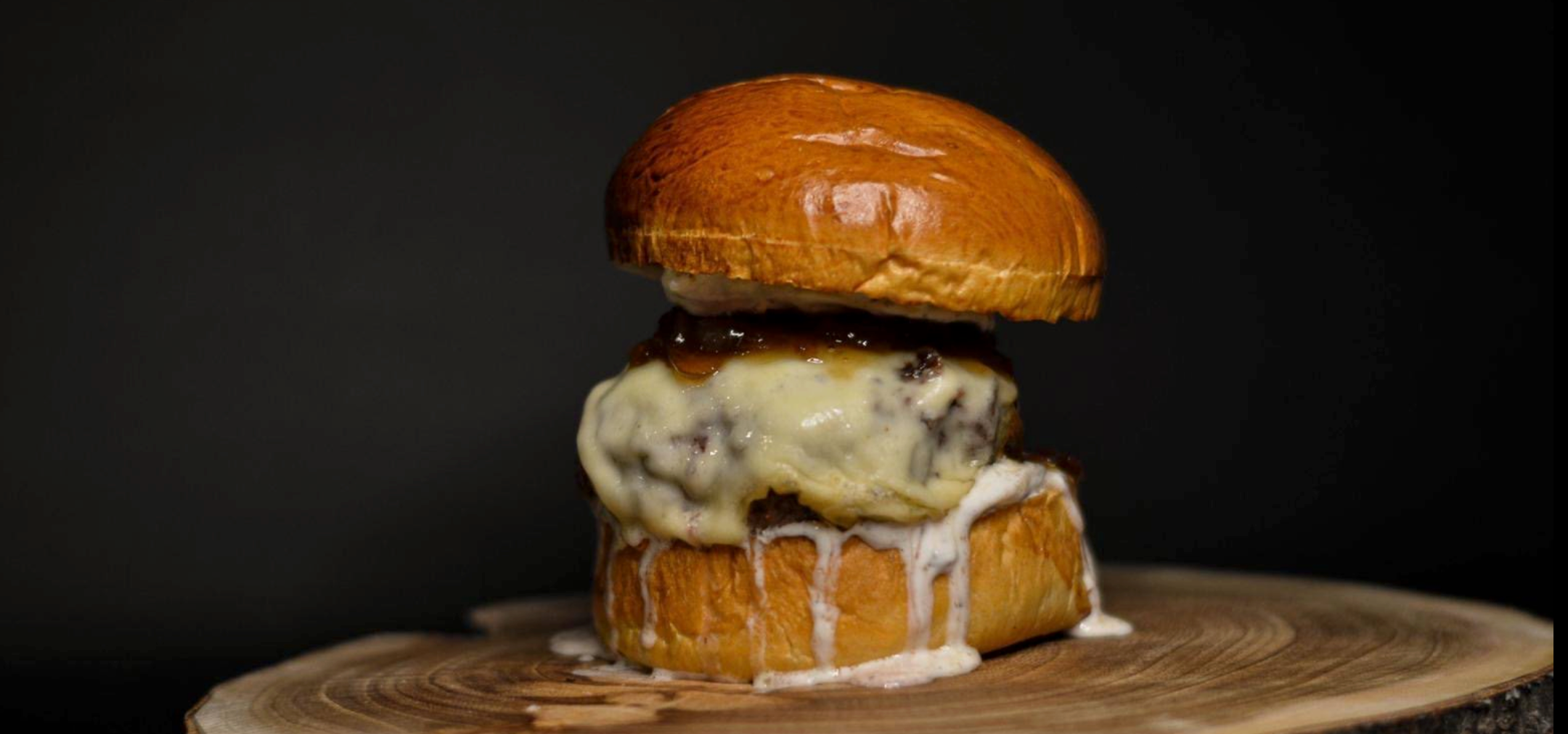 Pan brioche, carne de vaca rubia gallega madurada 45 días (200 g.), salsa de trufa casera, doble queso ahumado y cebolla caramelizada