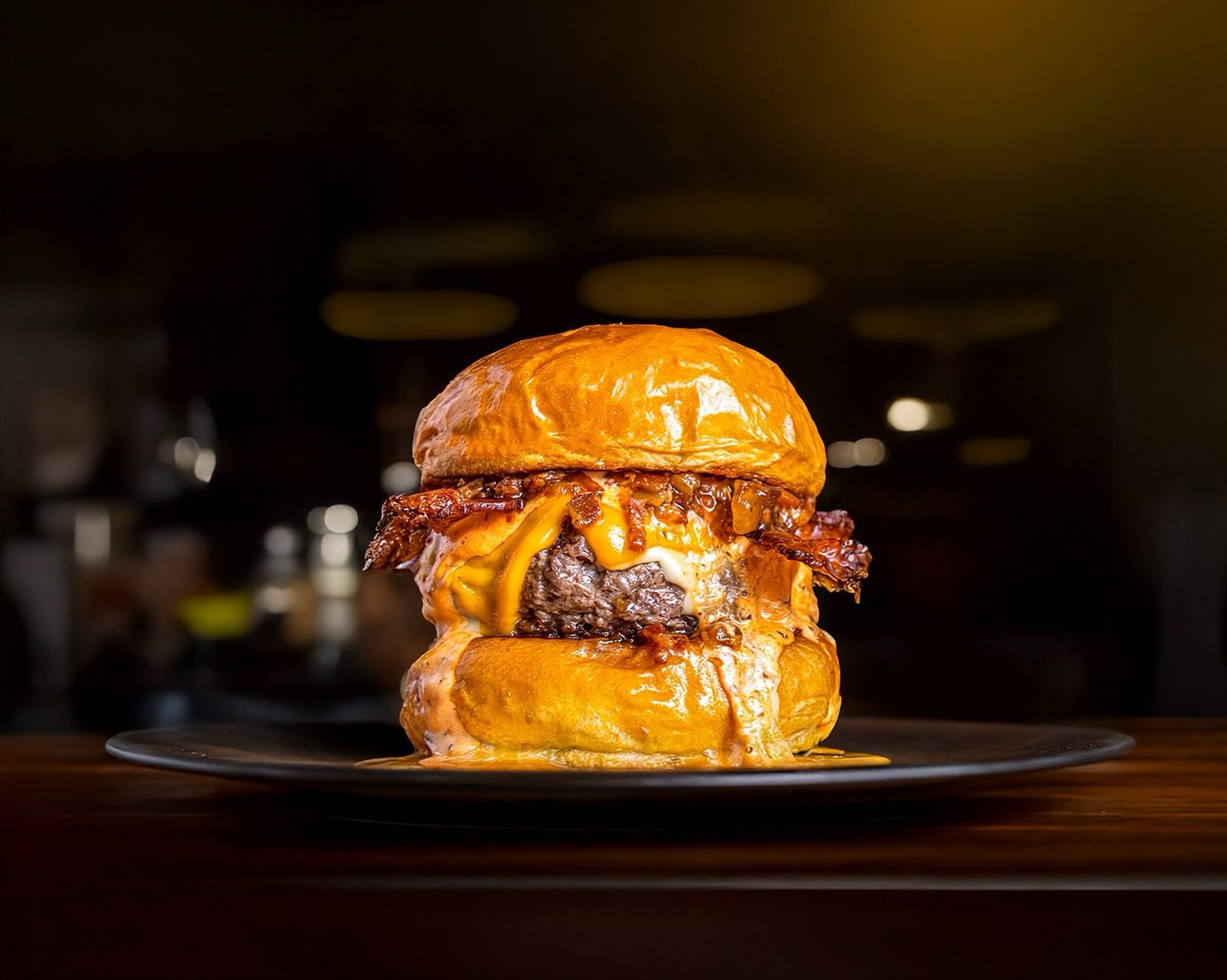 Condecorada como la segunda mejor hamburguesa de Madrid y Best Seller de la casa, preparada con 2 patties de 100 g al estilo smash, combinación de queso cheddar y gouda, bacon súper crunchy, mermelada de bacon cocinada a baja temperatura y salsa de pimientos latinos ligeramente picante.