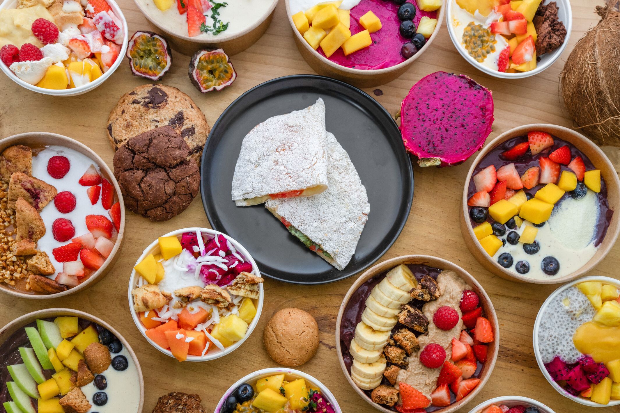 Maracuya fresca con pepitas, mango, mix de frutos rojos, piña, crema casera de Maracuyá y Coco ( vegana, sin azúcar) semillas de lino, ralladura de lima y toque de menta.