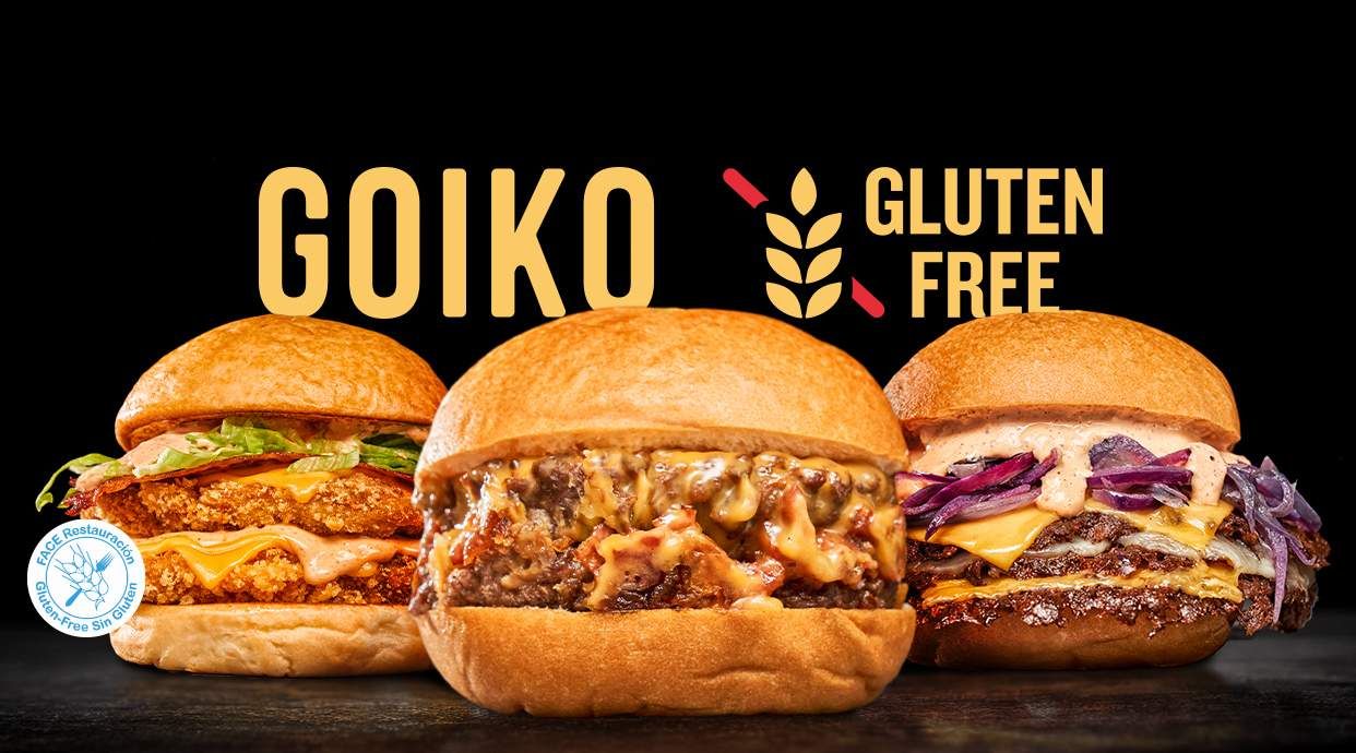 Una receta clásica de toda la vida. Hamburguesa sin gluten con queso americano, cebolla morada a la plancha, tomate, lechuga, pepinillos, salsa Barbacoa Goiko y salsa Mayo Goiko. Acompañada de patatas y salsa Barbacoa. 100% gluten free.