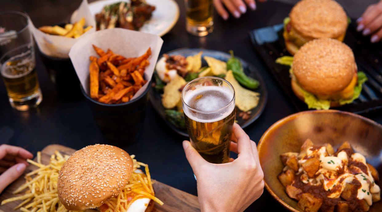 Incluye un entrante, dos hamburguesas, patatas fritas y dos bebidas. Indícanos el punto de las carnes en comentarios.
