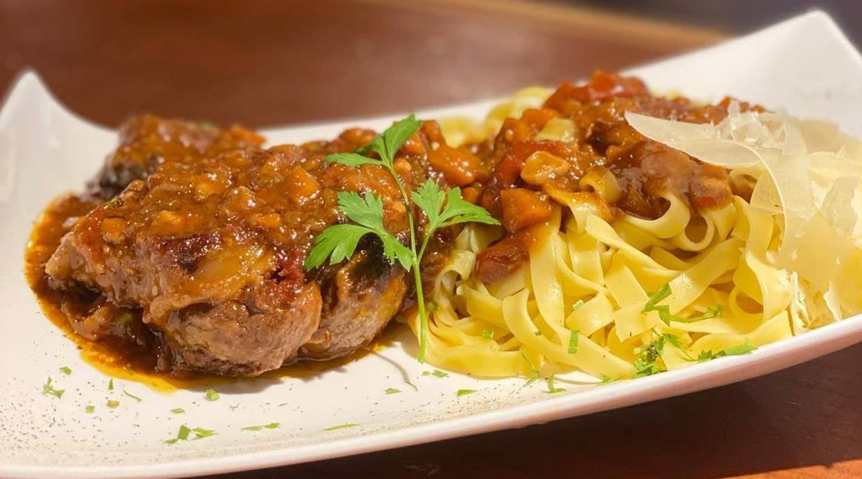 Pasta fresca casera rellena de carne bañado en salsa de champiñones, trufa negra y parmesano