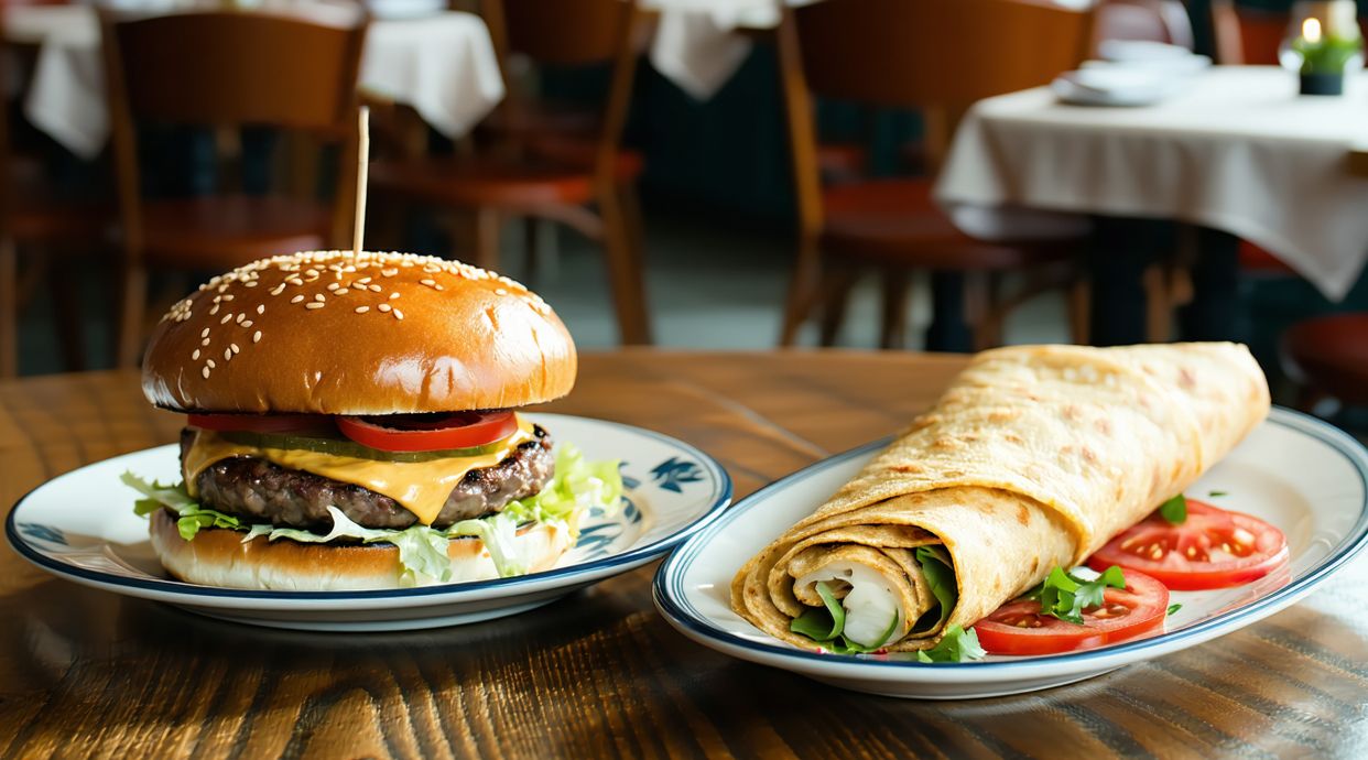 Pan torta fina, carne de ternera, lechuga, tomate, cebolla y salsa yogurt