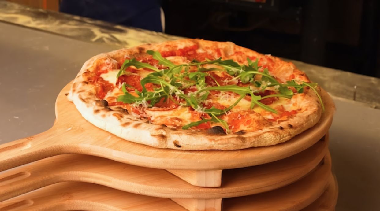 LA RECETA CLÁSICA PERO EN PIZZA: HUEVO, QUESO PECORINO, PANCETTA Y PIMIENTA, SOBRE MOZARELLA.
