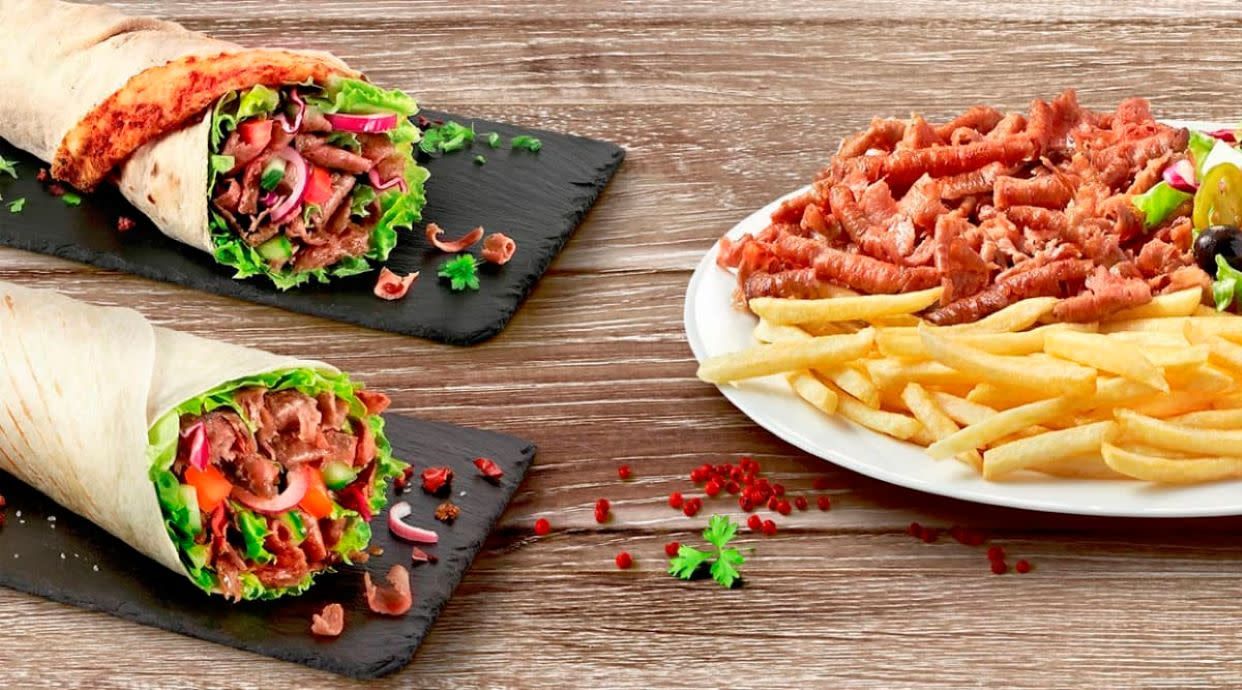 1 kebab de pollo, ternera o mixto, 1 refresco y patatas