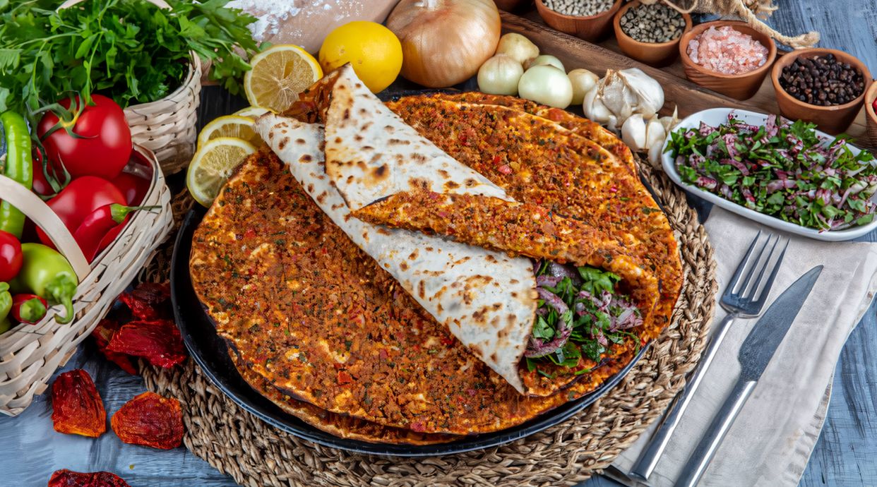 Ternera, col, cebolla, tomate, salsa yogurt y salsa picante