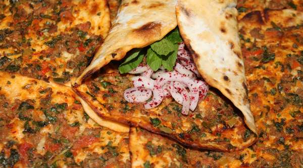 Mozzarella, tomate, orégano, ternera, cebolla, champiñón y olivas