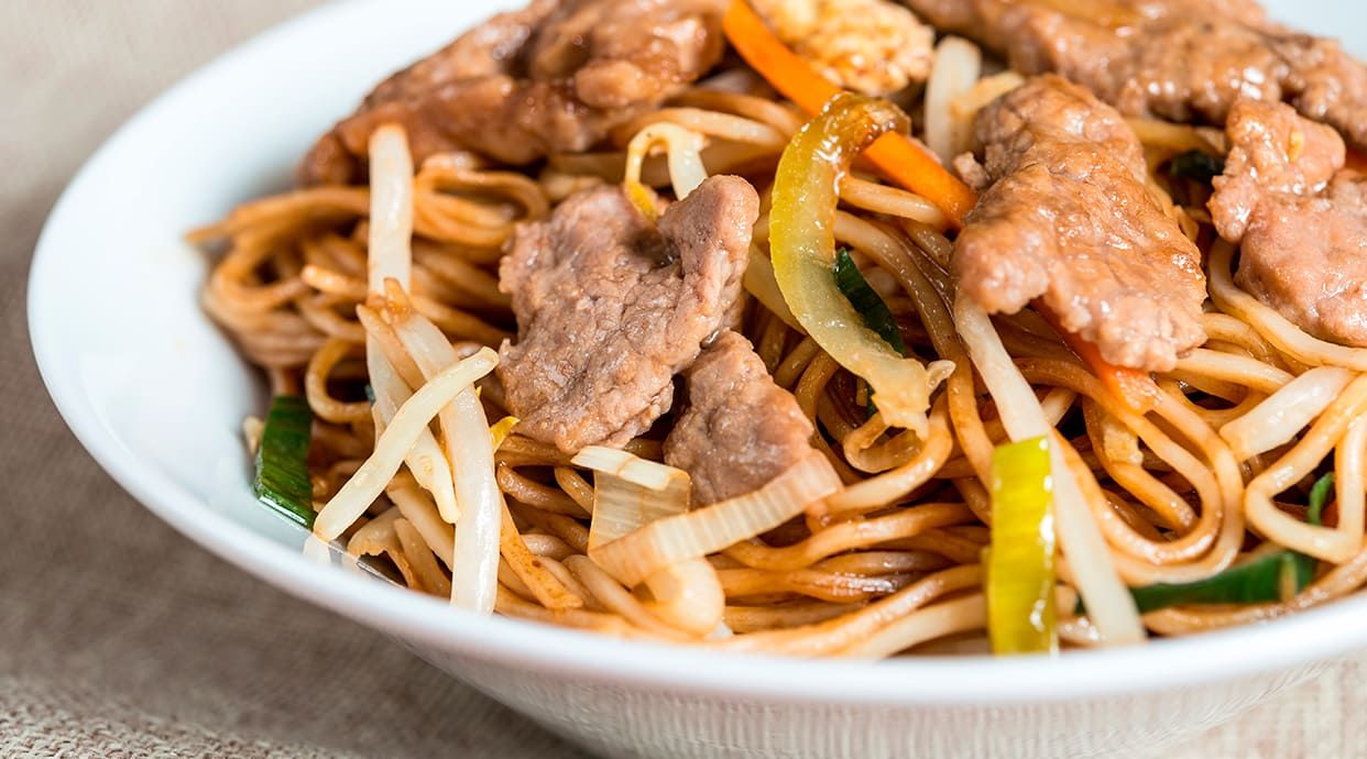 Tallarines fritos con tres delicias