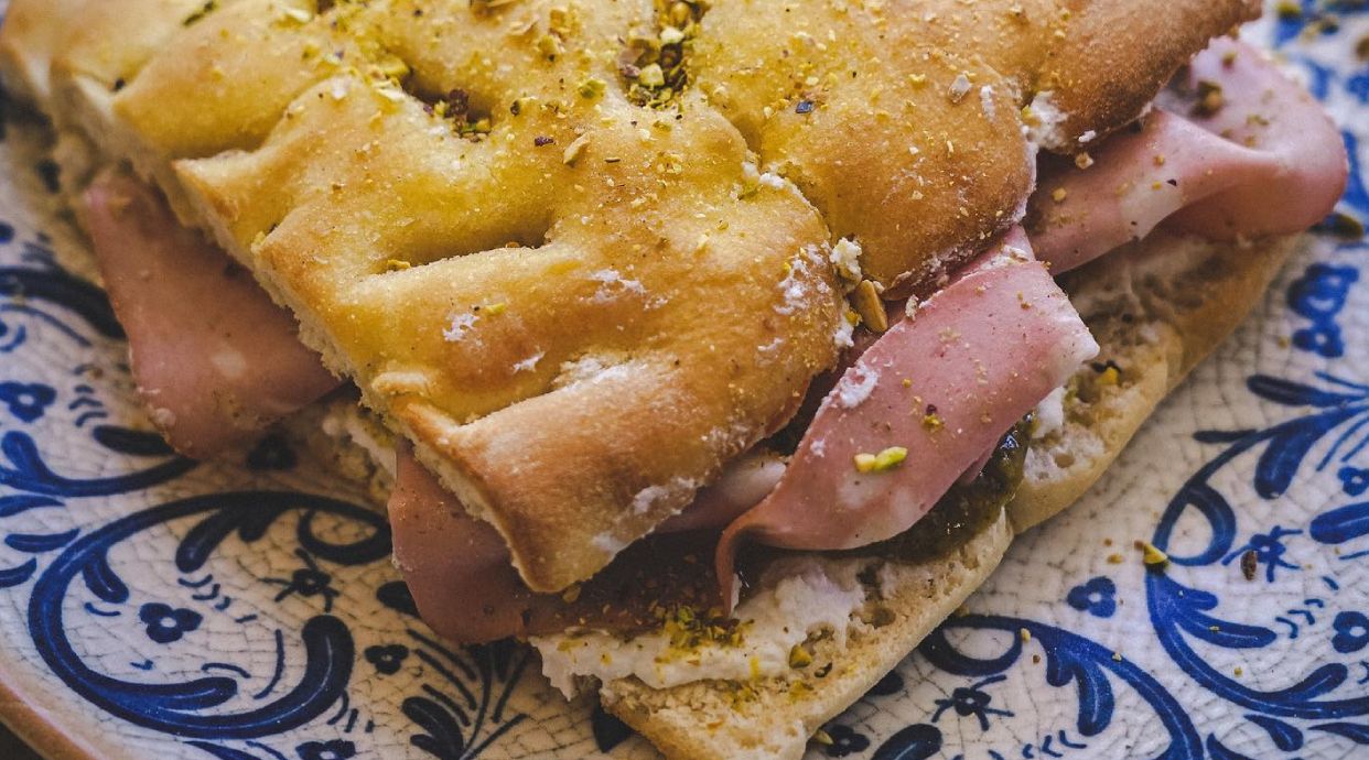 Calzone frito relleno de mozzarella fior di latte, salsa de tomate, speck Alto Adice y gorgonzola