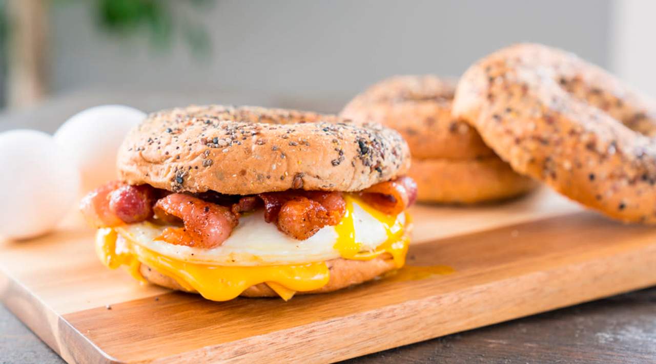 Delicioso bocadillo con pan de masa madre relleno de bacon y queso